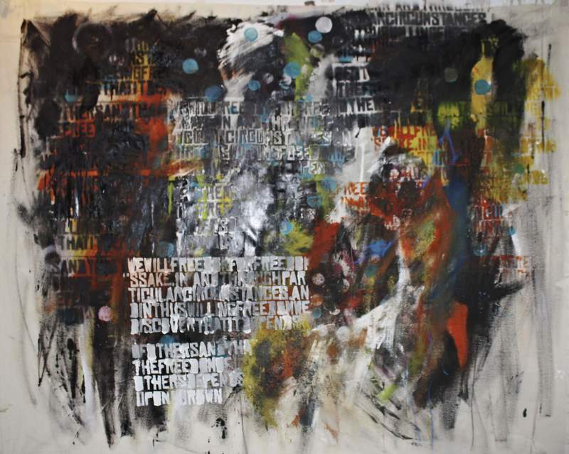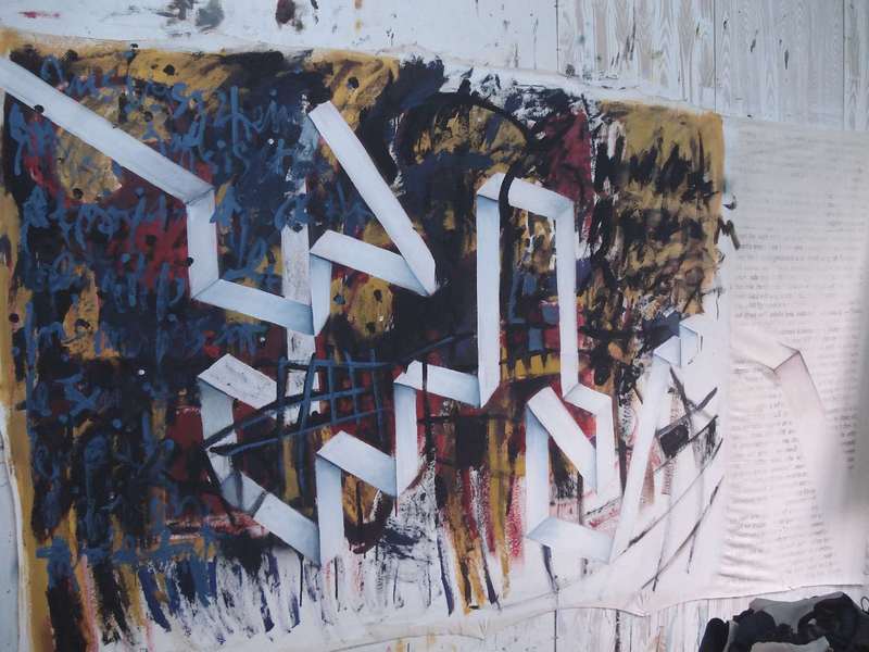Puse papeles de diarios en la pared y comenzó a esgrafiar precisamente la frase anterior. Creo que fue el primer trabajo grande que ví de Vika.