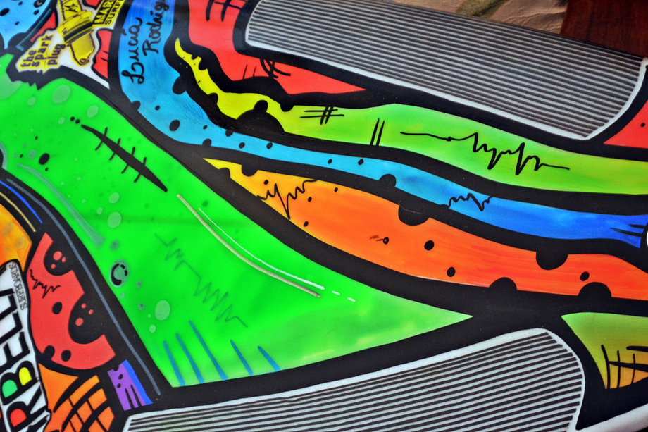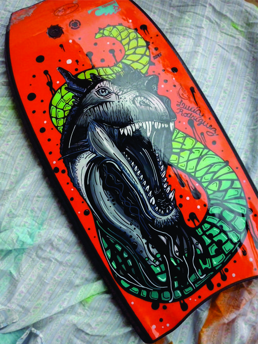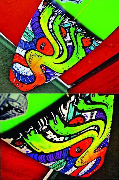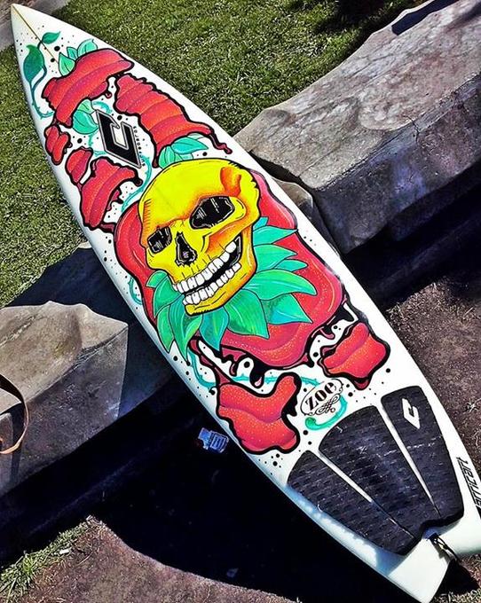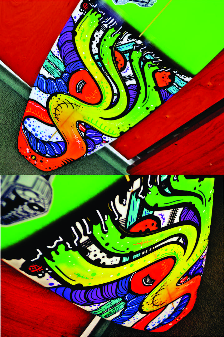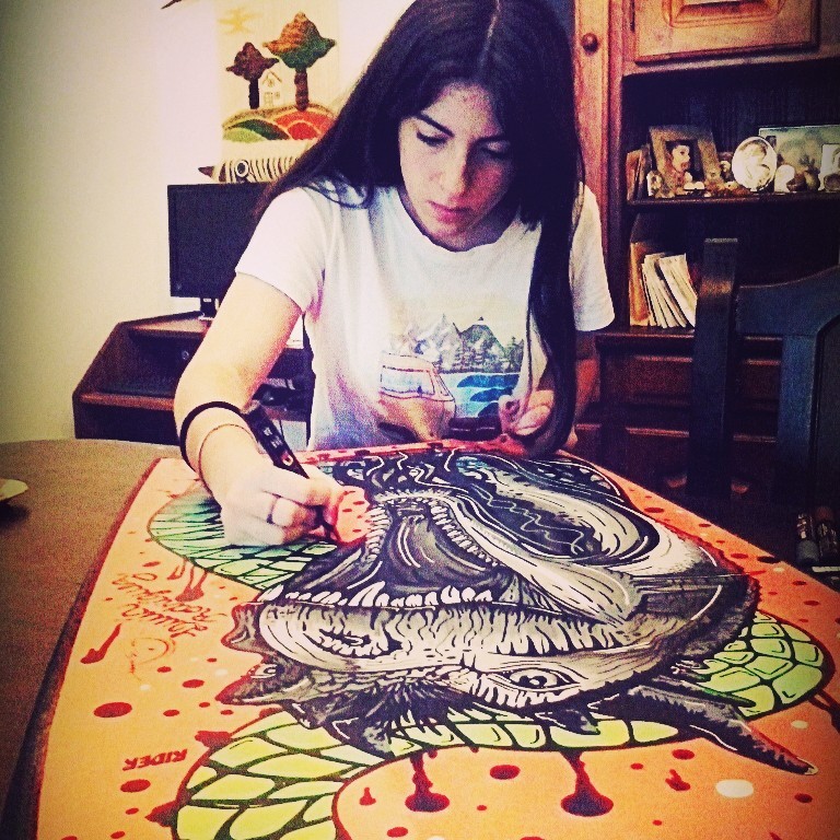 Soy estudiante de Diseño Industrial en la UNMDP. Intervengo diferentes objetos (cascos, tablas de surf, bodyboards, y demás), hago murales, realizo pinturas en bastidor, entre otras cosas.