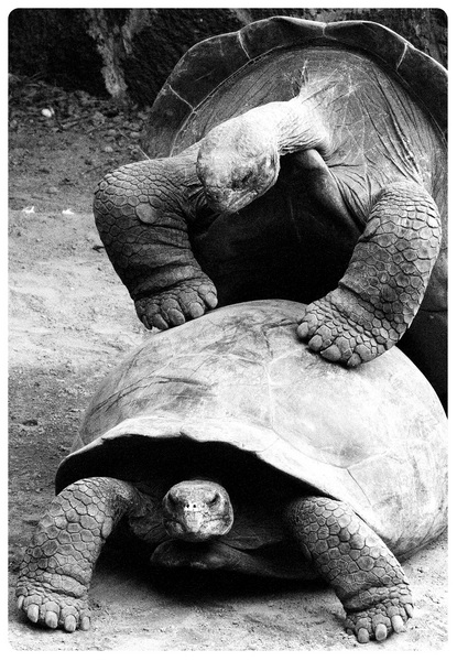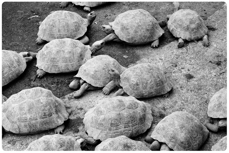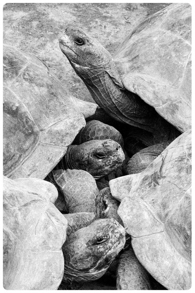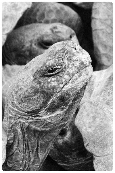 Arrimaditas y como contandose un secreto, asi encontre a este grupo de Galapagos, de alrededor de 80-90 años. Eleji disparar en Blanco y Negro porque sentia como volvia en el tiempo a medida que me conectaba con estas misticas Tortugas Galapagueñas. En